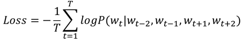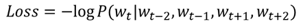 CBOW에서 중심단어의 확률은 다음과 같이 표시할 수 있다.