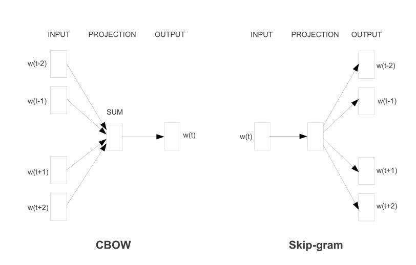 word2vec는 CBOW(Continuous Bags Of Words)와 Skip-gram 두가지 모델이 있는데, CBOW는 주변의 단어들을 가지고 대상 단어를 맞추는 것이고, Skip-gram은 대상 단어를 가지고 주변 단어가 무엇인지를 맞추는 것이다. 단어 임베딩 품질은 CBOW보다 skip-gram이 더 좋은 경우가 많다고 한다.