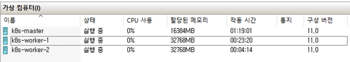 인프라 환경은 Hyper-V를 활용하여 master node 1대, worker 노드 2대로 구성한다.