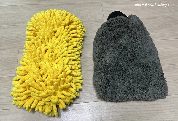 한번 폼건-> 고압수 로 이물질을 제대로 제거해 주고 품건을 뿌려서 미트질을 해준다. 미트질은 아래와 같은 워시 미트로 살살 쓸듯이 한다.